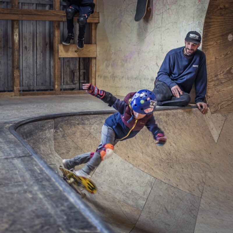 Bienvenue dans le 3ème plus grand skatepark couvert de France. Cet ancien hangar militaire de 2600m² abrite bowl en bois, big ramp, street area… Lieu idéal pour découvrir, pratiquer ou approfondir le skate – tous niveaux. Découvrez les horaires et tarifs pour pratiquer le skate au hangar Darwin.